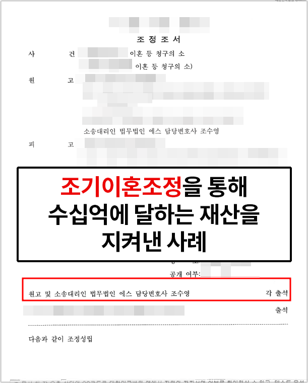 조기이혼 조정을 통해 수십억에 달하는 재산을 지켜낸 사례